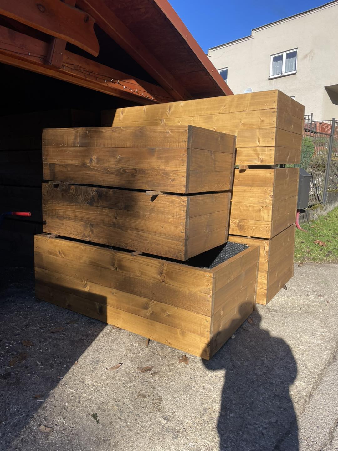 Naše záhony vyrábame z 5 cm masívnych smrekových fošní, hobľovaných do hladka a už natretých – dorazia k tebe komplet zložené a pripravené na uloženie na miesto.